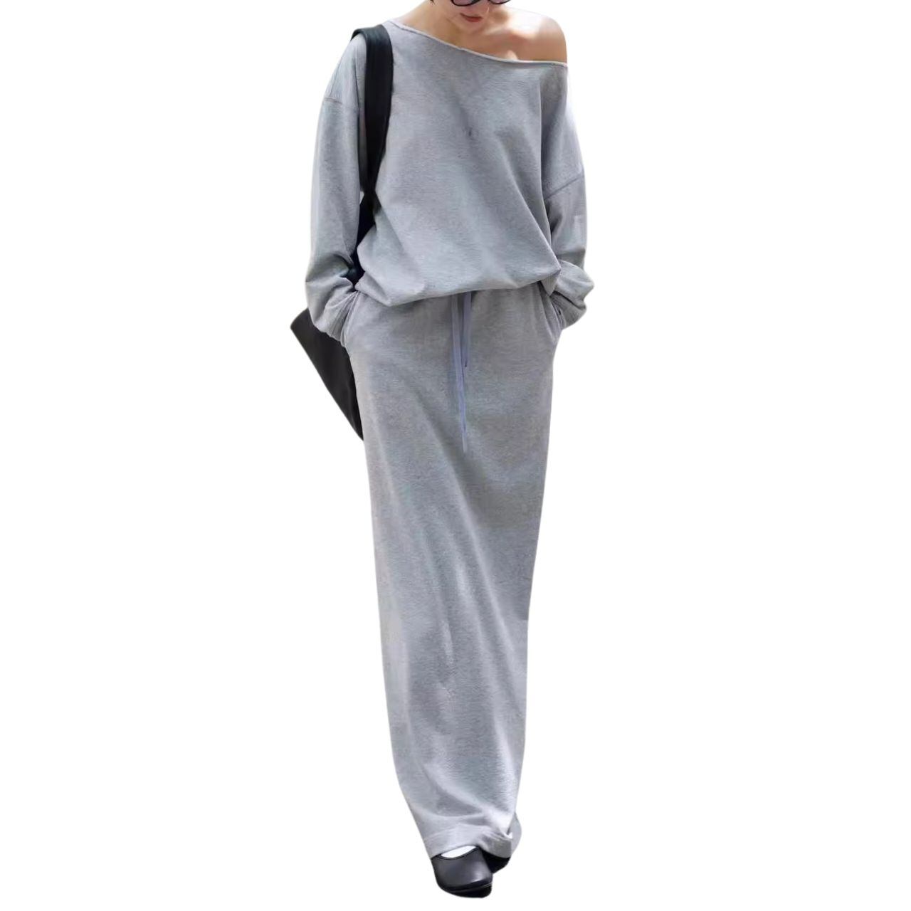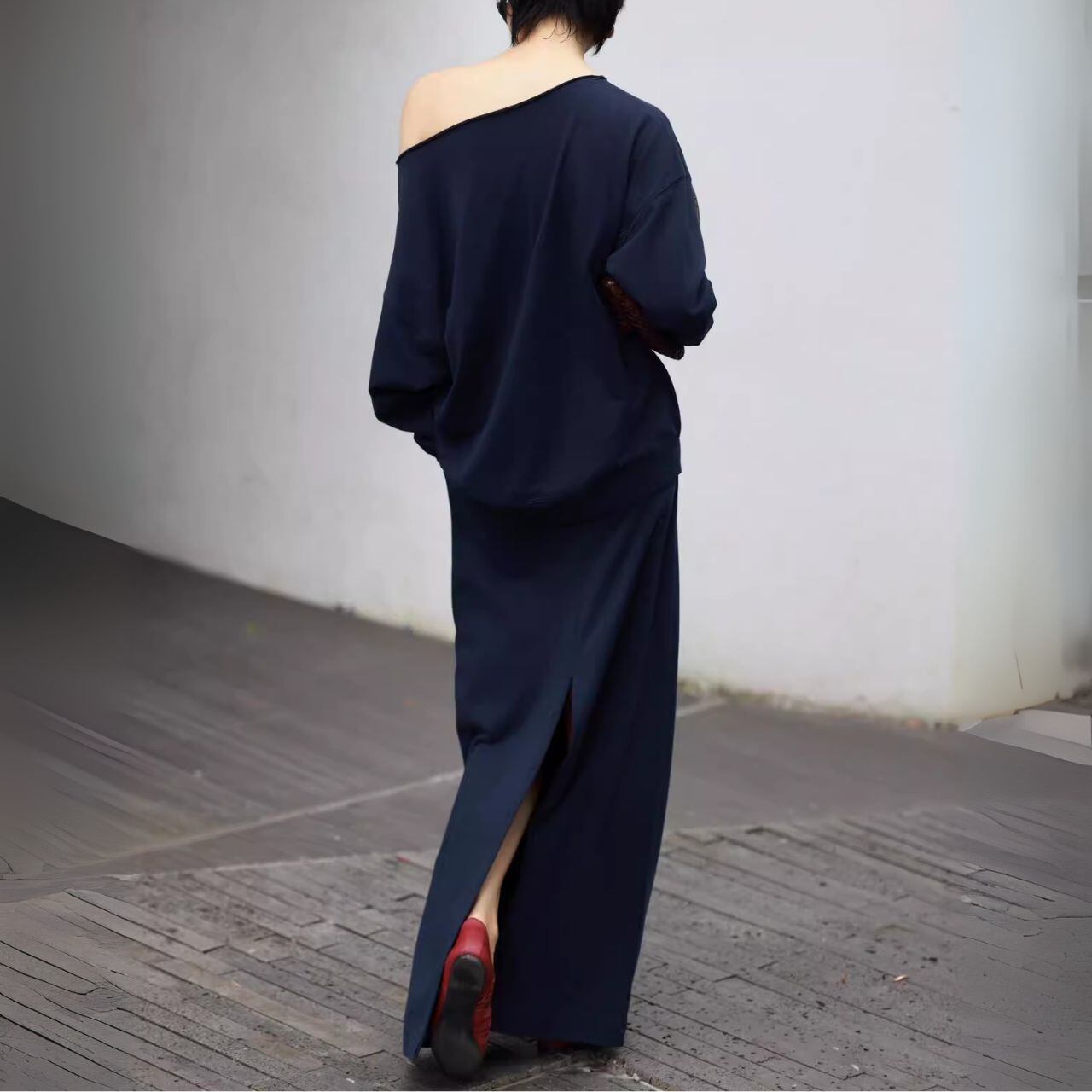 一枚で決まる、大人の余裕。 リラックス感とモードな雰囲気を両立させた、最旬のホワイトセットアップ。 オフショルダーのように肩を見せる着こなしも可能なトップスは、ゆったりとしたシルエットながらも、計算されたドレープが女性らしい抜け感を演出。 鎖骨を美しく見せ、さりげない肌見せがヘルシーな色香を漂わせます。 セットのロングスカートは、足首まで届くマキシ丈と、歩くたびに揺れるアシンメトリーな裾が特徴。身体のラインを拾わず、リラックスした着心地でありながら、ドラマティックな動きを生み出します。 シルバーのバングルやフラットシューズを合わせれば、ミニマルながらも存在感のあるスタイルが完成します。 カフェでのんびり過ごす休日も、アートギャラリーを巡る日も、このセットアップがあれば、いつでも自信を持って振る舞えます。 【サイズ】 S:肩幅36cm/胸囲84cm/ウエスト66cm/腰回66cm/ヒップ88cm/着丈99cm/袖丈39cm M:肩幅37cm/胸囲89cm/ウエスト70cm/腰回70cm/ヒップ92cm/着丈100cm/袖丈40cm L:肩幅38cm/胸囲93cm/ウエスト74cm/腰回74cm/ヒップ96cm/着丈101cm/袖丈41cm XL:肩幅39cm/胸囲97cm/ウエスト78cm/腰回78cm/ヒップ100cm/着丈102cm/袖丈42cm ※海外製品のため、1-3cm程の誤差がある場合がございます。 【カラー】 ネイビー ホワイト グレー ※海外製品のため、1-3cm程の誤差がある場合がございます。 【素材】 ポリエステル 【お届けについて】 こちらの商品は海外店舗より直接発送となる為、 ご入金から発送まで2~4週間前後のお時間をいただいております。 【注意事項】 ・タイミングによっては 商品在庫切れにより 注文キャンセルとさせていただく恐れもございますので、予めご了承くださいませ。 ・こちらは輸入品となります。日本製とは検品基準が異なる為、 新品未使用品でもごくわずかな汚れや傷がある場合もございます。 ・商品の色味は、お使いのデバイスの画面によって実物と若干異なる場合がございます。 ・イメージ違いやサイズ交換等、お客さまご都合による交換、返品は対応出来かねます。 ———————————— ご購入前にこちらをお読みください https://official.lachique.tokyo/about ————————————