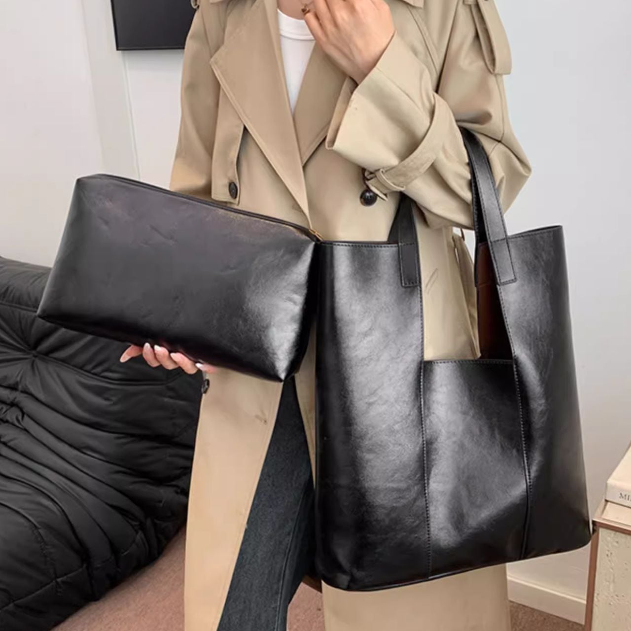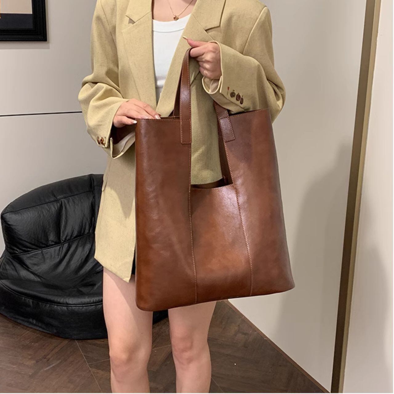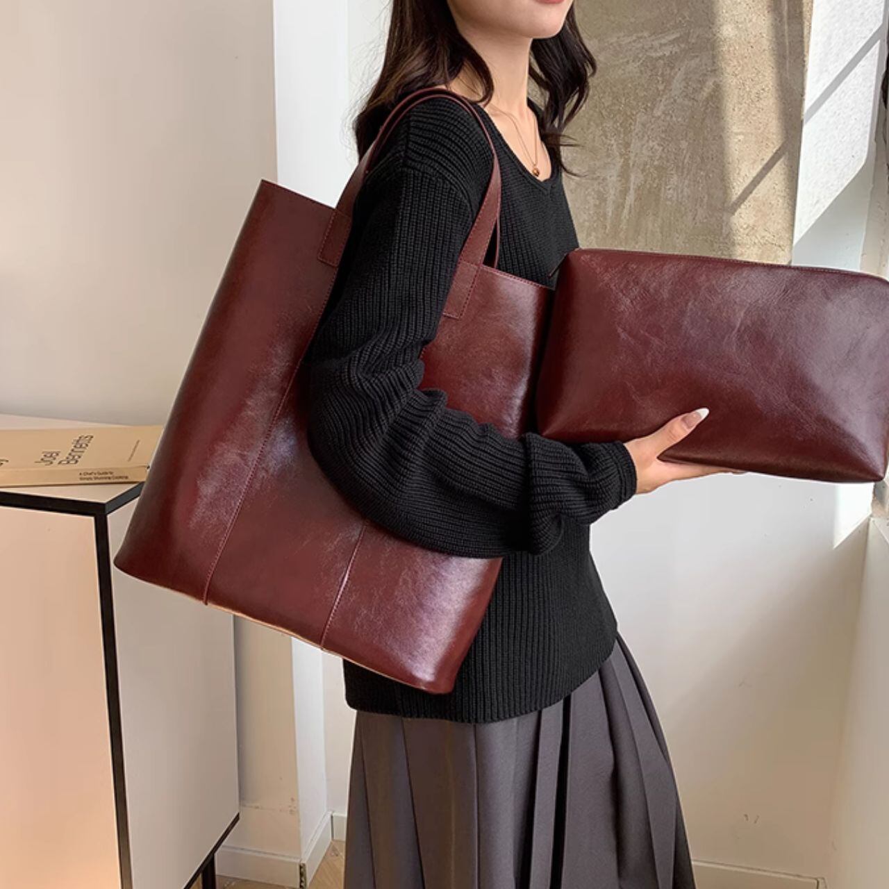 シンプルなデザインの縦型トートバッグです。 無駄を省いた洗練されたデザインで、どんなスタイルにも合わせやすく、デイリーユースにぴったりです。 A4ファイルはもちろん、タブレットやメイクポーチなど、あなたの「今日」を支える必需品をスマートに収納。 そして、セットになった同素材のポーチは、散らばりがちな小物や貴重品の整理に最適です。 バッグインバッグとしても単体でも使える柔軟性で、あなたのスタイルに寄り添います。 【サイズ】 トートバッグ 高さ:43cm 幅:43cm マチ:10cm ポーチ 高さ:20cm 幅:35cm ※海外製品のため、1-3cm程の誤差がある場合がございます。 【カラー】 ブラウン レッド ダークブラウン ブラック 【素材】 合成皮革 【お届けについて】 こちらの商品は海外店舗より直接発送となる為、 ご入金から発送まで2~4週間前後のお時間をいただいております。 【注意事項】 ・タイミングによっては 商品在庫切れにより 注文キャンセルとさせていただく恐れもございますので、予めご了承くださいませ。 ・こちらは輸入品となります。日本製とは検品基準が異なる為、 新品未使用品でもごくわずかな汚れや傷がある場合もございます。 ・商品の色味は、お使いのデバイスの画面によって実物と若干異なる場合がございます。 ・イメージ違いやサイズ交換等、お客さまご都合による交換、返品は対応出来かねます。 ———————————— ご購入前にこちらをお読みください https://official.lachique.tokyo/about ————————————