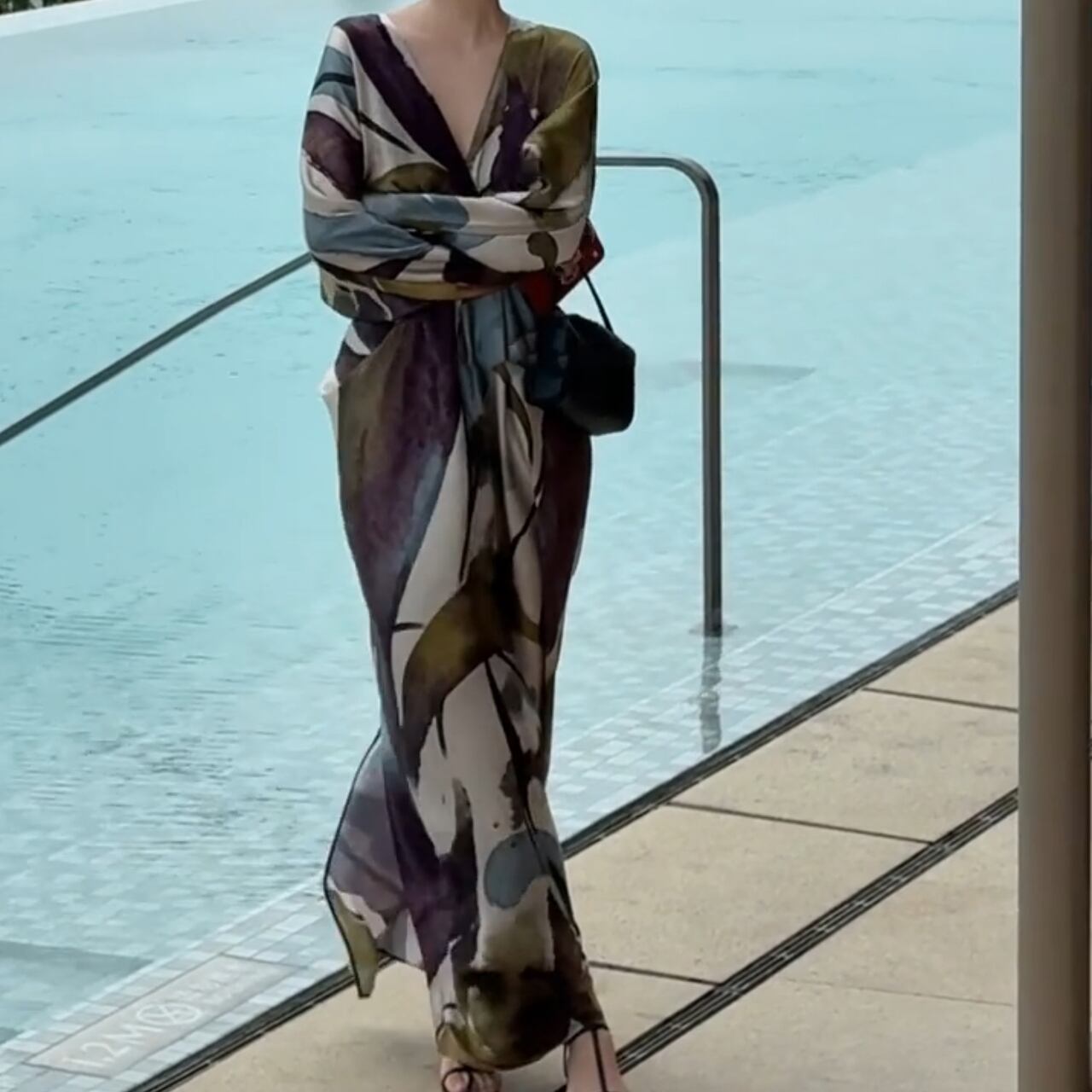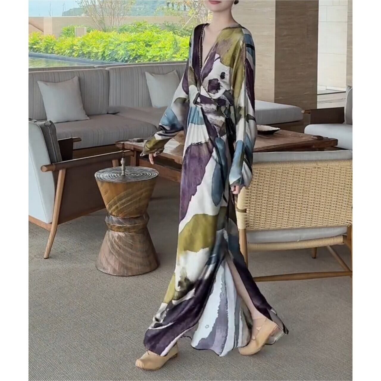 ウエストのツイストとハイライズな位置で結ぶリボンが、完璧なスタイルアップを実現。 柔らかな素材が風をはらみ、リラックスしながらもエレガントさをキープします。 旅先はもちろん、都会の喧騒の中でも、あなただけの優雅な空間を演出する特別な一着です。 このドレスで、あなたらしさを解き放ちませんか。 【サイズ】 S:バスト90cm/ウエスト70cm/着丈132cm/袖丈62cm/裾まわり330cm M:バスト94cm/ウエスト74cm/着丈135cm/袖丈63cm/裾まわり334cm L:バスト98cm/ウエスト78cm/着丈138cm/袖丈64cm/裾まわり338cm XL:バスト102cm/ウエスト82cm/着丈142cm/袖丈65cm/裾まわり342cm 【モデル着用サイズ】S 身長165cm、体重43kg 【カラー】 マルチカラー ※海外製品のため、1-3cm程の誤差がある場合がございます。 【素材】 ポリエステル80%、その他20% 【お届けについて】 こちらの商品は海外店舗より直接発送となる為、 ご入金から発送まで2~4週間前後のお時間をいただいております。 【注意事項】 ・タイミングによっては 商品在庫切れにより 注文キャンセルとさせていただく恐れもございますので、予めご了承くださいませ。 ・こちらは輸入品となります。日本製とは検品基準が異なる為、 新品未使用品でもごくわずかな汚れや傷がある場合もございます。 ・商品の色味は、お使いのデバイス画面によって実物と若干異なる場合がございます。 ・イメージ違いやサイズ交換等、お客さまご都合による交換、返品は対応出来かねます。 ———————————— ご購入前にこちらをお読みください https://official.lachique.tokyo/about ————————————