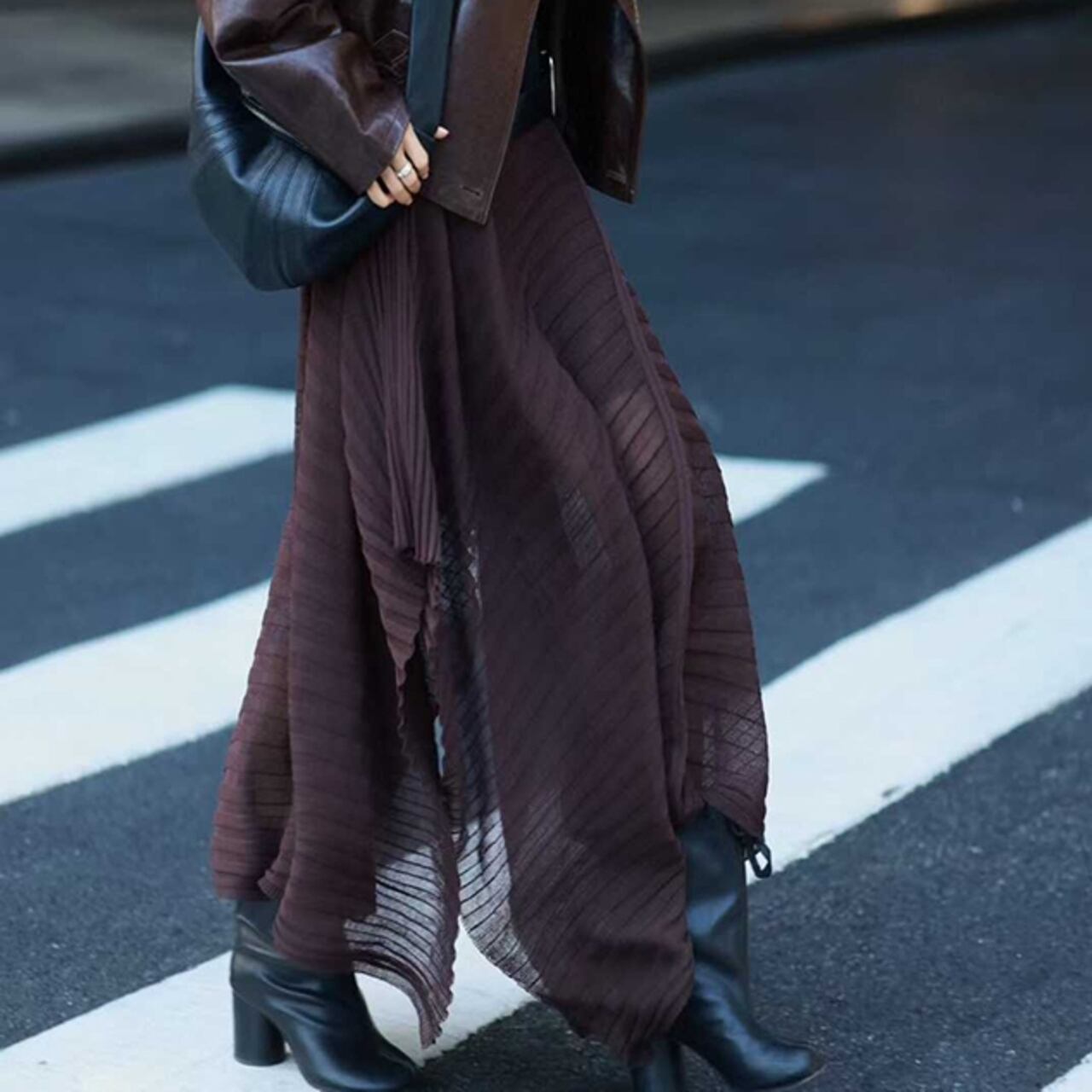 風をはらむたびに、表情を変える繊細なプリーツ。 単調になりがちな秋冬の装いに、生命力を吹き込む深いボルドーブラウン(またはバーガンディ)は、重くなりがちなレザーやニット素材とも絶妙に調和します。 裾はランダムなカッティングのアシンメトリーデザイン。 軽やかなシアー素材と相まって、足元に抜け感とリズムを生み出します。 ロングブーツやショートブーツを合わせても、肌がのぞくことで重く見えず、スタイリッシュなバランスをキープ。 ※インに着用の透け見え防止アンダーは付属しません 【サイズ】 S:ウエスト64cm/ヒップ92cm/総丈98cm M:ウエスト68cm/ヒップ96cm/総丈102cm L:ウエスト72cm/ヒップ100cm/総丈106cm XL:ウエスト76cm/ヒップ104cm/総丈110cm 【モデル着用サイズ】Sサイズ 身長165cm、 体重46.5kg 【カラー】 ブラウン 【素材】 ポリエステル ※海外製品のため、1-3cm程の誤差がある場合がございます。 【お届けについて】 こちらの商品は海外店舗より直接発送となる為、 ご入金から発送まで2~4週間前後のお時間をいただいております。 【注意事項】 ・タイミングによっては 商品在庫切れにより 注文キャンセルとさせていただく恐れもございますので、予めご了承くださいませ。 ・こちらは輸入品となります。日本製とは検品基準が異なる為、 新品未使用品でもごくわずかな汚れや傷がある場合もございます。 ・商品の色味は、お使いのデバイスの画面によって実物と若干異なる場合がございます。 ・イメージ違いやサイズ交換等、お客さまご都合による交換、返品は対応出来かねます。 ———————————— ご購入前にこちらをお読みください https://official.lachique.tokyo/about ————————————