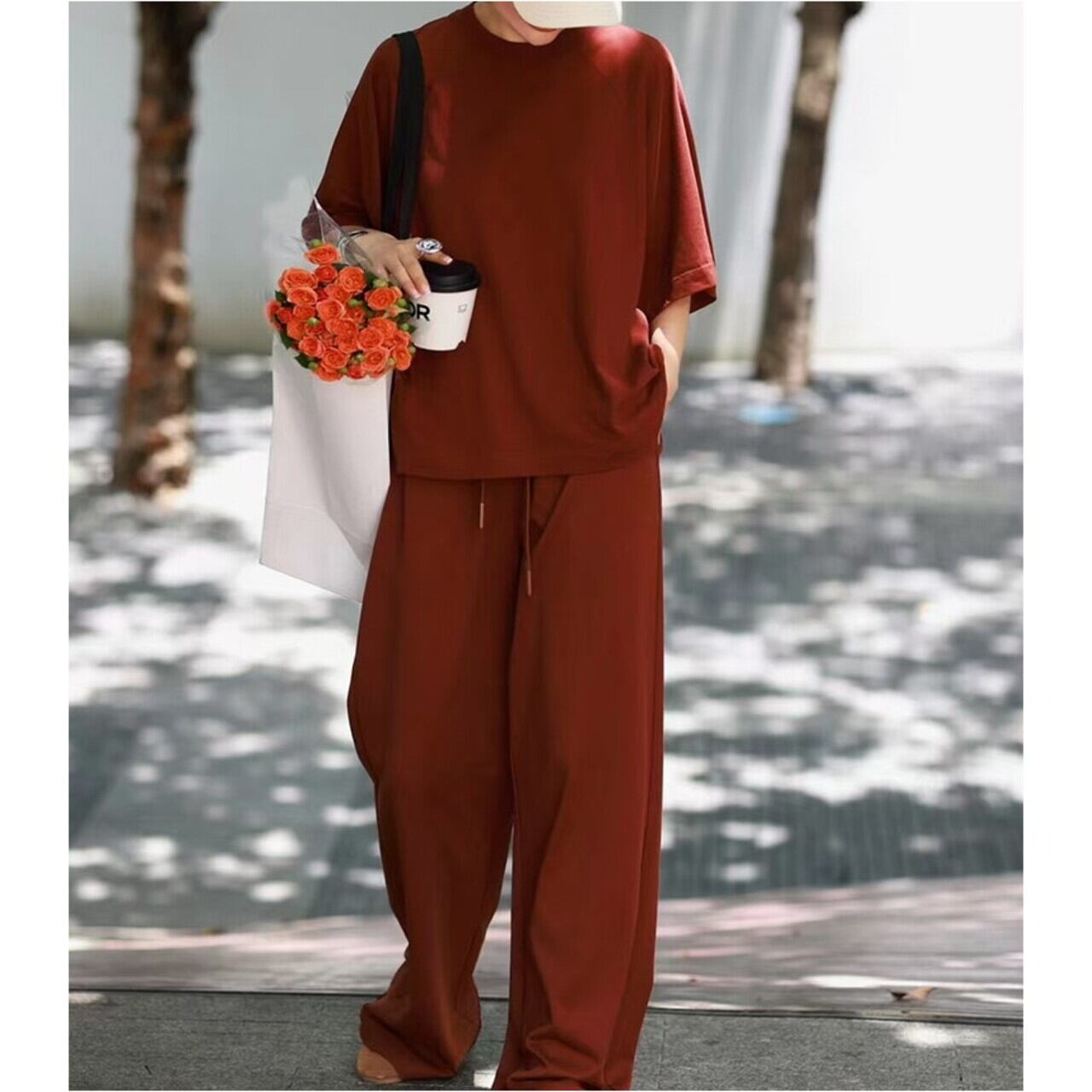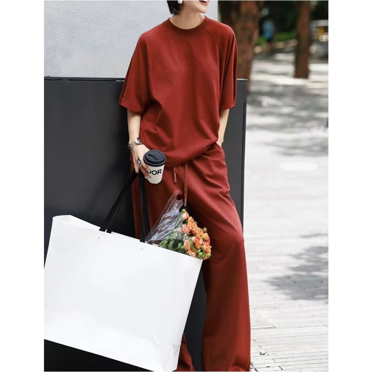 ゆったりとしたシルエットが魅力の、半袖Tシャツとワイドパンツのセットアップです。 リラックスした着心地で、おうちでのリラックスタイムやちょっとしたお出かけにも最適です。 セットアップで着るのはもちろん、トップスとボトムスを別々に着こなすことで、コーディネートの幅が広がります。 【サイズ】 トップス S:肩幅40cm/胸囲108cm/着丈72cm M:肩幅41cm/胸囲112cm/着丈73cm L:肩幅42cm/胸囲116cm/着丈74cm XL:肩幅43cm/胸囲120cm/着丈75cm パンツ S:ウエスト64cm/ヒップ92cm/総丈98cm M:ウエスト68cm/ヒップ96cm/総丈102cm L:ウエスト72cm/ヒップ100cm/総丈106cm XL:ウエスト76cm/ヒップ104cm/総丈110cm 【モデル着用サイズ】S 身長165cm、体重43kg 【カラー】 レッド ※海外製品のため、1-3cm程の誤差がある場合がございます。 【素材】 ポリエステル 【お届けについて】 こちらの商品は海外店舗より直接発送となる為、 ご入金から発送まで2~4週間前後のお時間をいただいております。 【注意事項】 ・タイミングによっては 商品在庫切れにより 注文キャンセルとさせていただく恐れもございますので、予めご了承くださいませ。 ・こちらは輸入品となります。日本製とは検品基準が異なる為、 新品未使用品でもごくわずかな汚れや傷がある場合もございます。 ・商品の色味は、お使いのデバイス画面によって実物と若干異なる場合がございます。 ・イメージ違いやサイズ交換等、お客さまご都合による交換、返品は対応出来かねます。 ———————————— ご購入前にこちらをお読みください https://official.lachique.tokyo/about ————————————