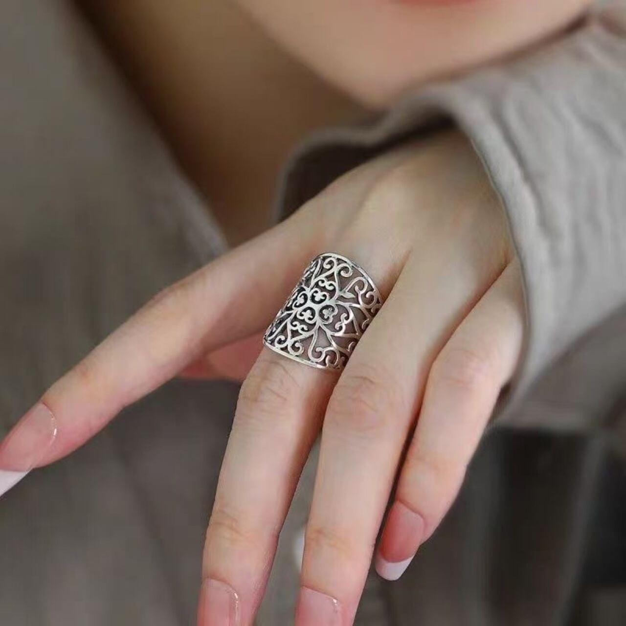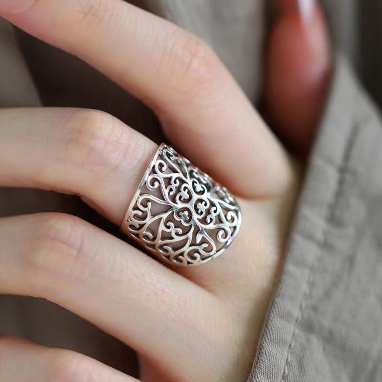 精巧なアラベスク調の透かし彫りが目を引くリング。 繊細な模様が指先を美しく彩り、上品な印象を与えます。 普段使いはもちろん、特別な日の装いにも相性ぴったり。 【サイズ】 フリーサイズ 【カラー】 シルバー ※海外製品のため、1-3cm程の誤差がある場合がございます。 【素材】 Silver925 【お届けについて】 こちらの商品は海外店舗より直接発送となる為、 ご入金から発送まで2~4週間前後のお時間をいただいております。 【注意事項】 ・タイミングによっては 商品在庫切れにより 注文キャンセルとさせていただく恐れもございますので、予めご了承くださいませ。 ・こちらは輸入品となります。日本製とは検品基準が異なる為、 新品未使用品でもごくわずかな汚れや傷がある場合もございます。 ・商品の色味は、お使いのデバイス画面によって実物と若干異なる場合がございます。 ・イメージ違いやサイズ交換等、お客さまご都合による交換、返品は対応出来かねます。 ———————————— ご購入前にこちらをお読みください https://official.lachique.tokyo/about ————————————