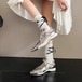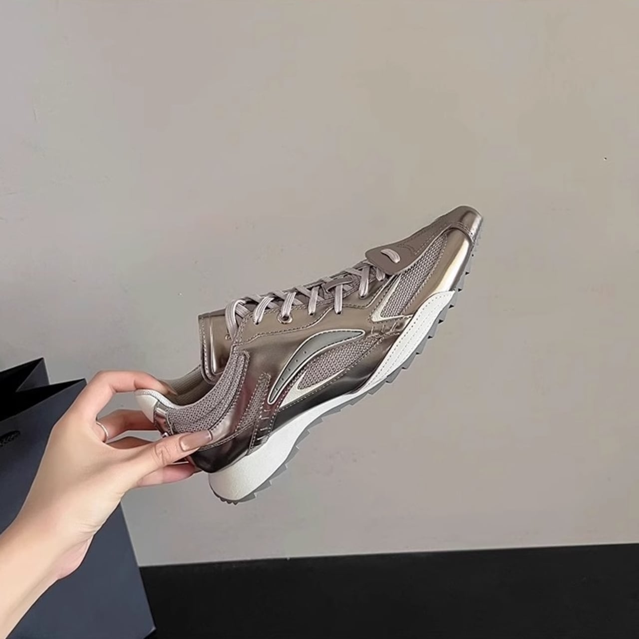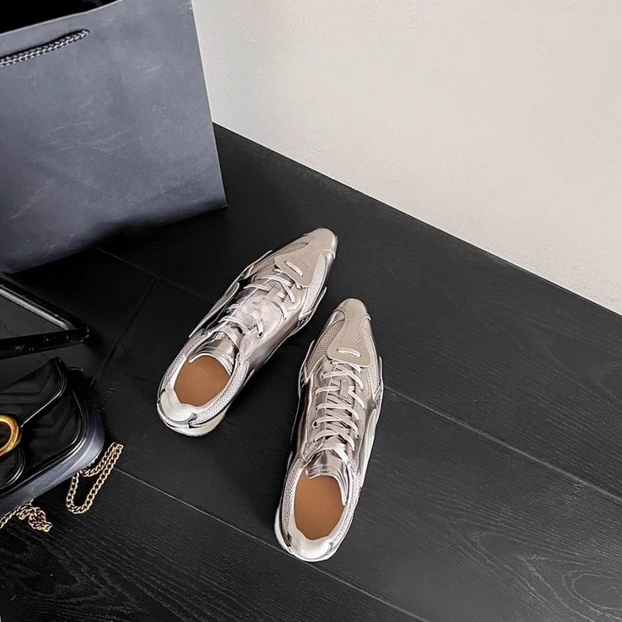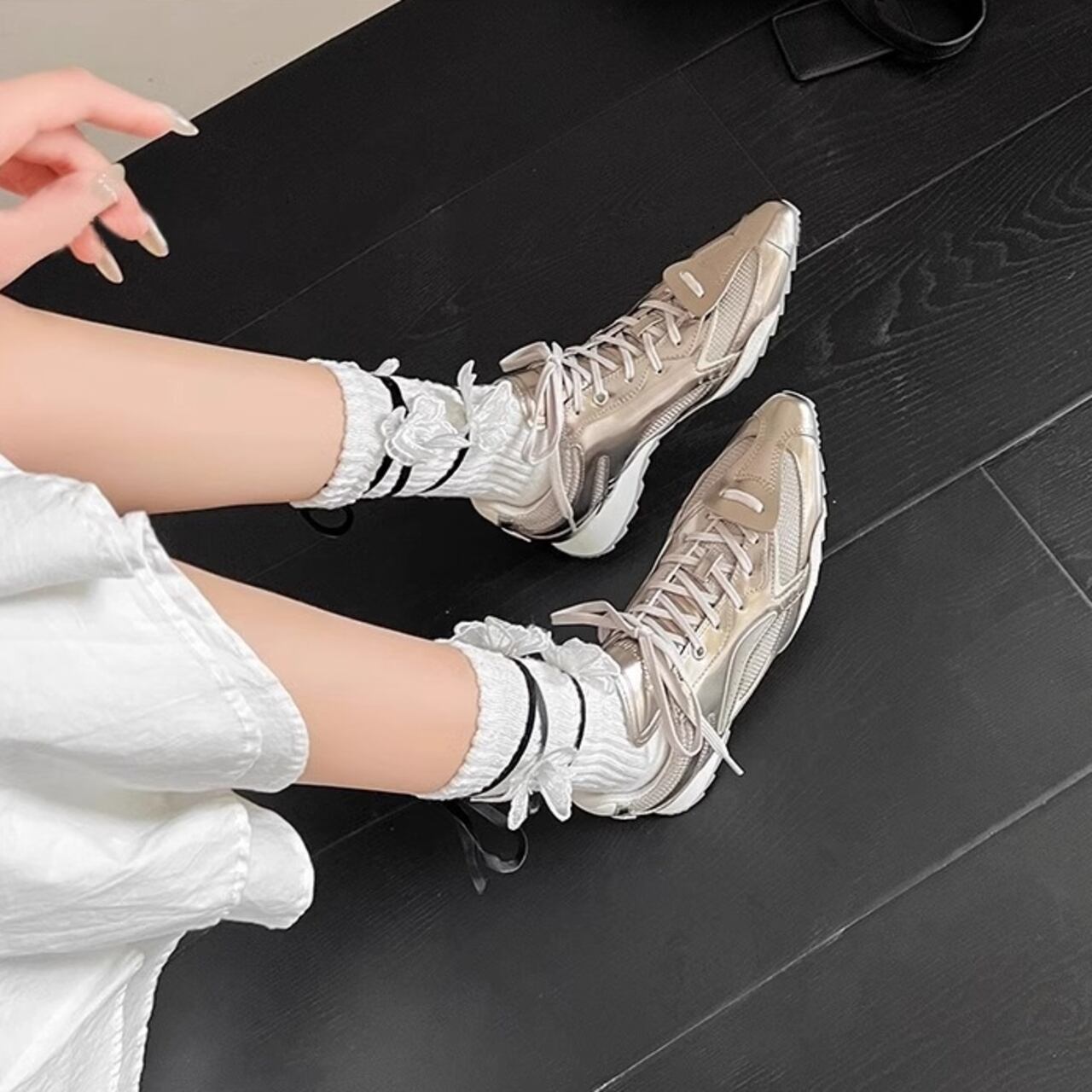 メタリックな輝きが目を引くスニーカーです。 レースアップデザインで、普段使いからちょっとしたお出かけまで、幅広いシーンで活躍します。 コーディネートのアクセントとして、足元を華やかに演出します。 【サイズ】 35:22.5cm 36:23cm 37:23.5cm 38:24cm 39:24.5cm 40:25cm ソール:3cm ※同じメーカーでもモデルによってサイズが異なる場合がございます。あくまでご注文の際の目安としてご参照ください。 ※海外製品のため、1cm~程度の誤差がある場合がございます。 【カラー】 シルバー ※海外製品のため、1-3cm程の誤差がある場合がございます。 【素材】 アッパー:PUレザー、メッシュ 靴底:ラバー 【お届けについて】 こちらの商品は海外店舗より直接発送となる為、 ご入金から発送まで2~4週間前後のお時間をいただいております。 【注意事項】 ・タイミングによっては 商品在庫切れにより 注文キャンセルとさせていただく恐れもございますので、予めご了承くださいませ。 ・こちらは輸入品となります。日本製とは検品基準が異なる為、 新品未使用品でもごくわずかな汚れや傷がある場合もございます。 ・商品の色味は、お使いのデバイス画面によって実物と若干異なる場合がございます。 ・イメージ違いやサイズ交換等、お客さまご都合による交換、返品は対応出来かねます。 ———————————— ご購入前にこちらをお読みください https://official.lachique.tokyo/about ————————————