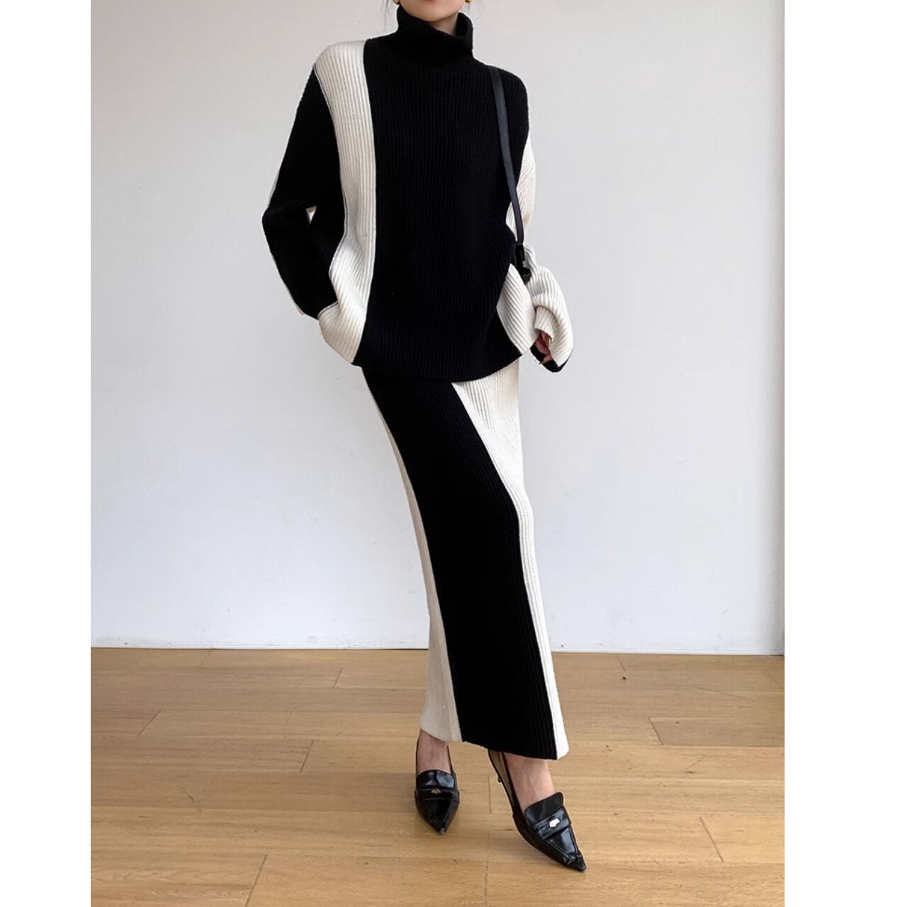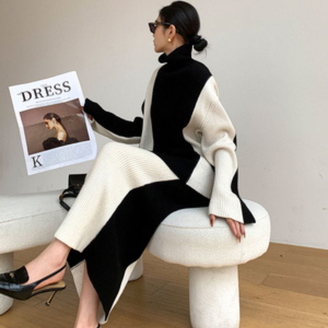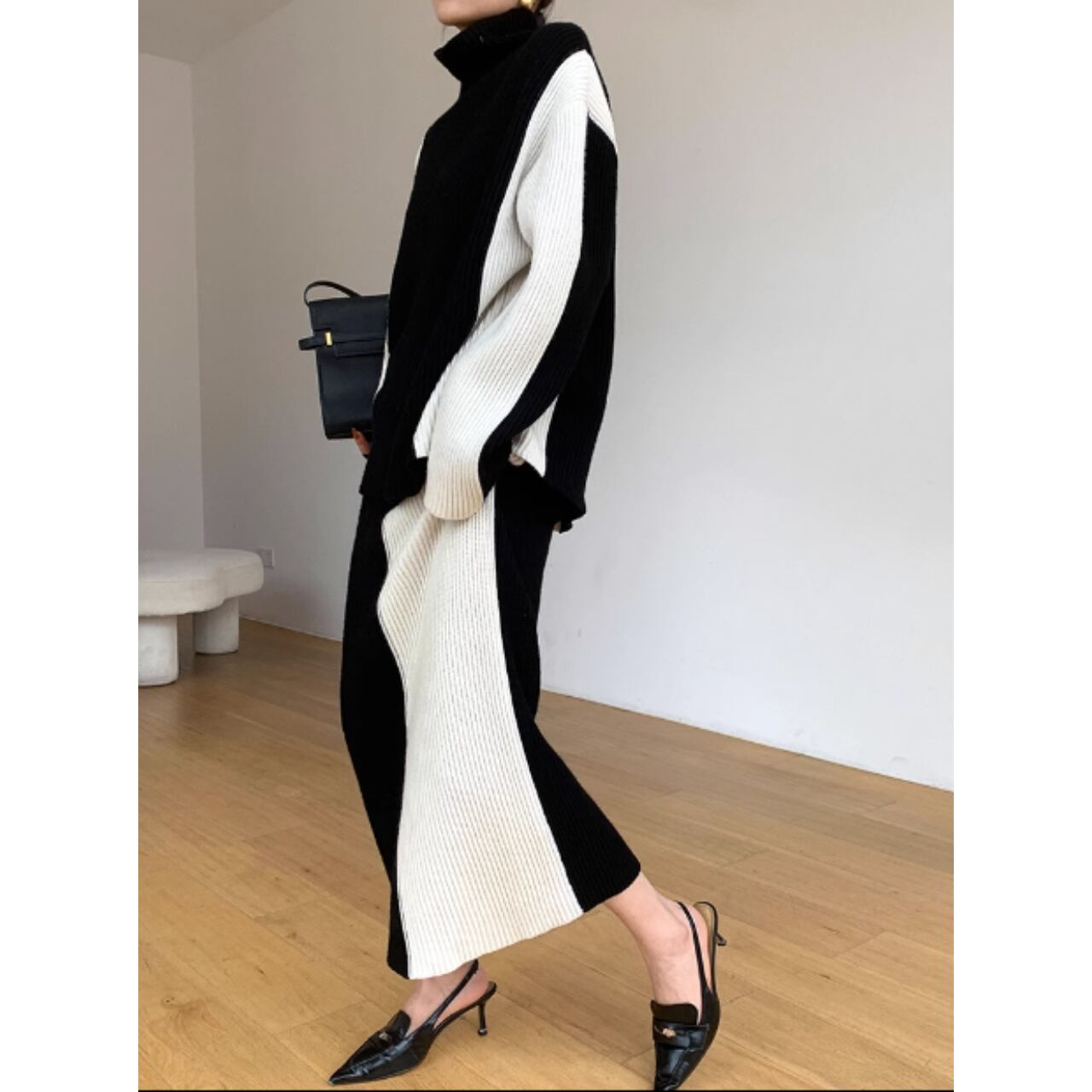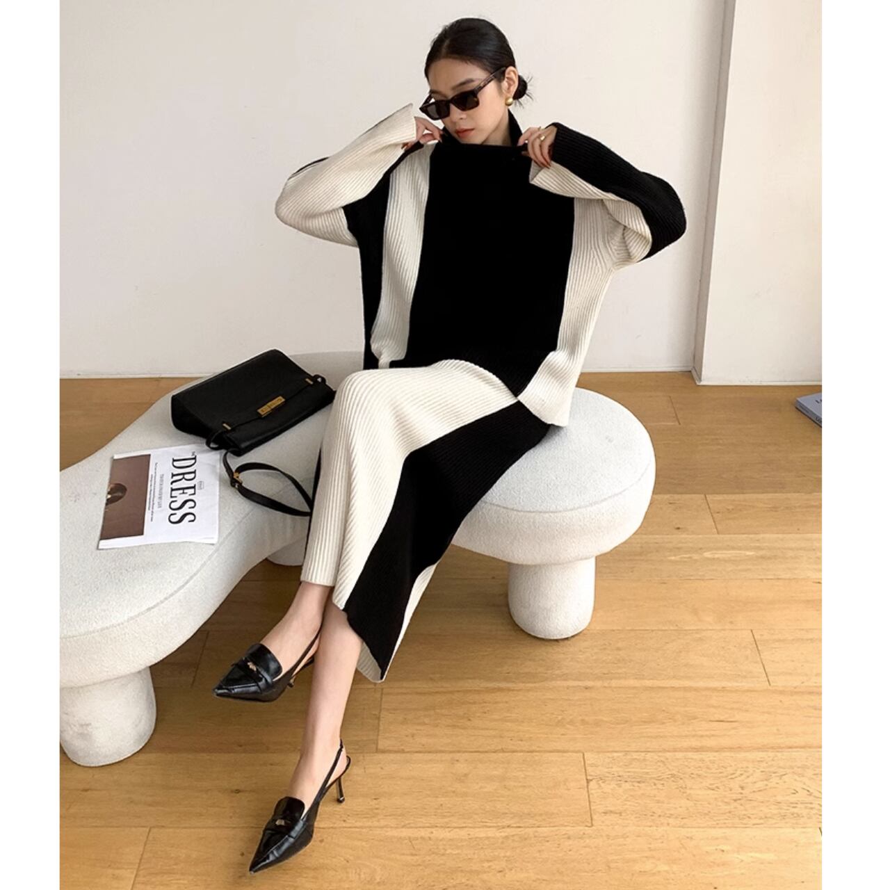 上品で洗練されたコントラストバイカラーのセットアップ。黒と白のコントラストが、シックでありながらも目を引く一着です。 【サイズ】 S:肩幅53cm/胸囲122cm/着丈66cm/袖丈60cm ウエスト62cm/スカート丈95cm M:肩幅54cm/胸囲126cm/着丈67cm/袖丈61cm ウエスト66cm/スカート丈96cm L:肩幅55cm/胸囲130cm/着丈68cm/袖丈62cm ウエスト70cm/スカート丈97cm ※海外製品のため、1-3cm程の誤差がある場合がございます。 【カラー】 ブラック×ホワイト 【素材】 アクリル 【お届けについて】 こちらの商品は海外店舗より直接発送となる為、 ご入金から発送まで2~4週間前後のお時間をいただいております。 【注意事項】 ・タイミングによっては 商品在庫切れにより 注文キャンセルとさせていただく恐れもございますので、予めご了承くださいませ。 ・こちらは輸入品となります。日本製とは検品基準が異なる為、 新品未使用品でもごくわずかな汚れや傷がある場合もございます。 ・商品の色味は、お使いのデバイスの画面によって実物と若干異なる場合がございます。 ・イメージ違いやサイズ交換等、お客さまご都合による交換、返品は対応出来かねます。 ———————————— ご購入前にこちらをお読みください https://official.lachique.tokyo/about ————————————