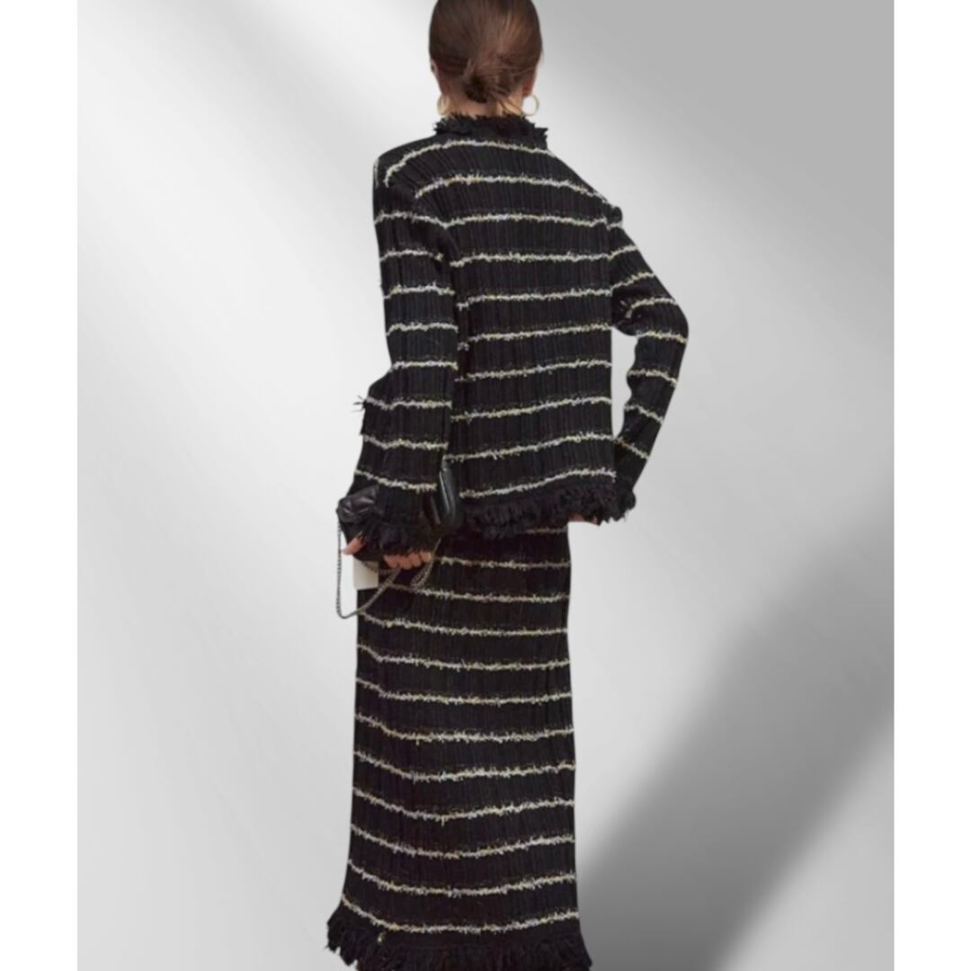 黒地にゴールドのディティールが施された、オトナデザインのニットです。 【サイズ】 S、M、L 【モデル着用サイズ】S 身長167㎝ 【カラー】 ブラック 【素材】 アクリル、ポリエステル 【お届けについて】 こちらの商品は海外店舗より直接発送となる為、 ご入金から発送まで2~4週間前後のお時間をいただいております。 【注意事項】 ・タイミングによっては 商品在庫切れにより 注文キャンセルとさせていただく恐れもございますので、予めご了承くださいませ。 ・こちらは輸入品となります。日本製とは検品基準が異なる為、 新品未使用品でもごくわずかな汚れや傷がある場合もございます。 ・商品の色味は、お使いのデバイス画面によって実物と若干異なる場合がございます。 ・イメージ違いやサイズ交換等、お客さまご都合による交換、返品は対応出来かねます。 ———————————— ご購入前にこちらをお読みください https://official.lachique.tokyo/about ————————————